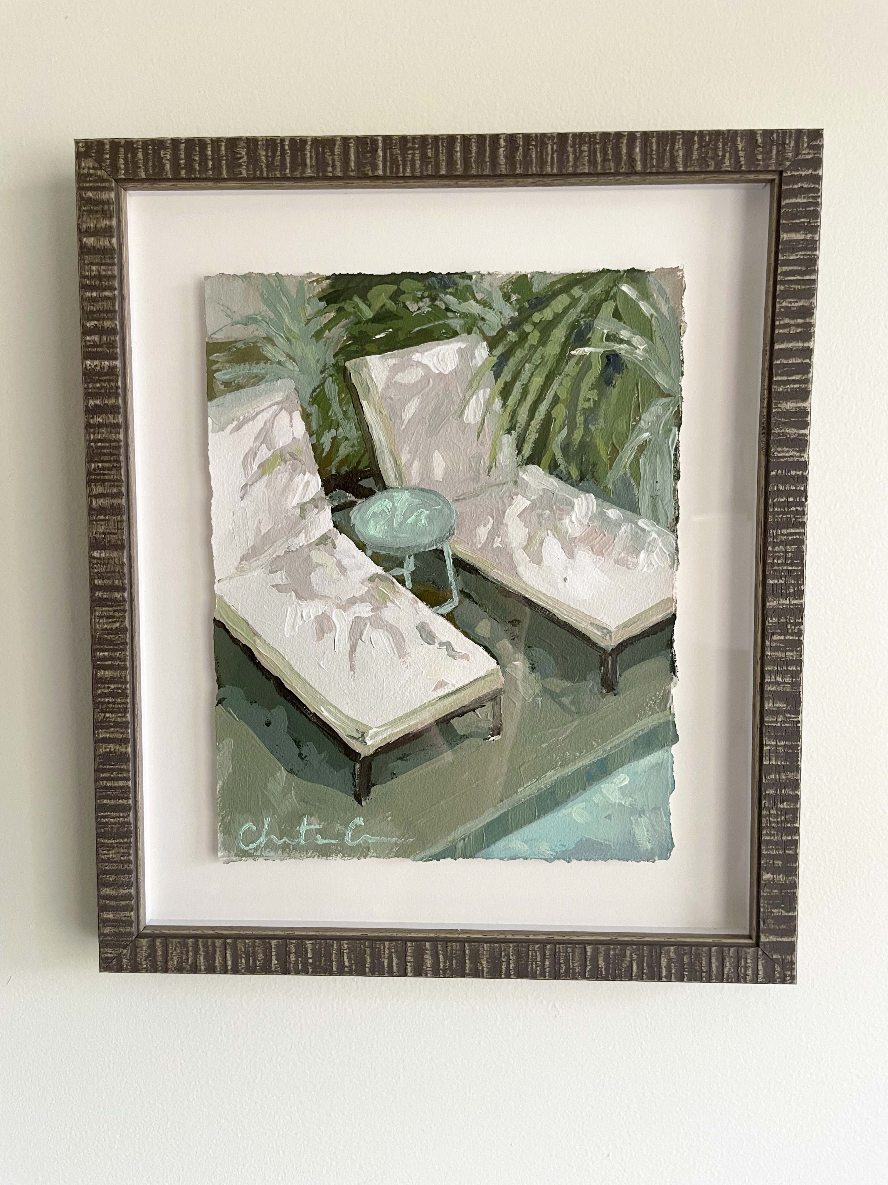 Christine hopes to create artwork that strikes the balance of fun and timeless, in an effortless manner. Composition and color harmony are a distinctive part of her work. Her palettes and subject matter are heavily influenced by her upbringing along the east coast of Florida. She hopes to bring everyday scenes to life through a new perspective and unexpected moments of color. Christine paints entirely from the three primaries (red, yellow + blue) and white. This has helped her gain a strong understanding of color theory.