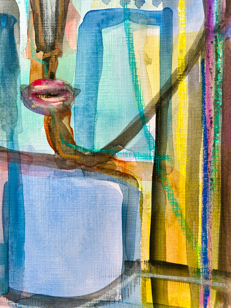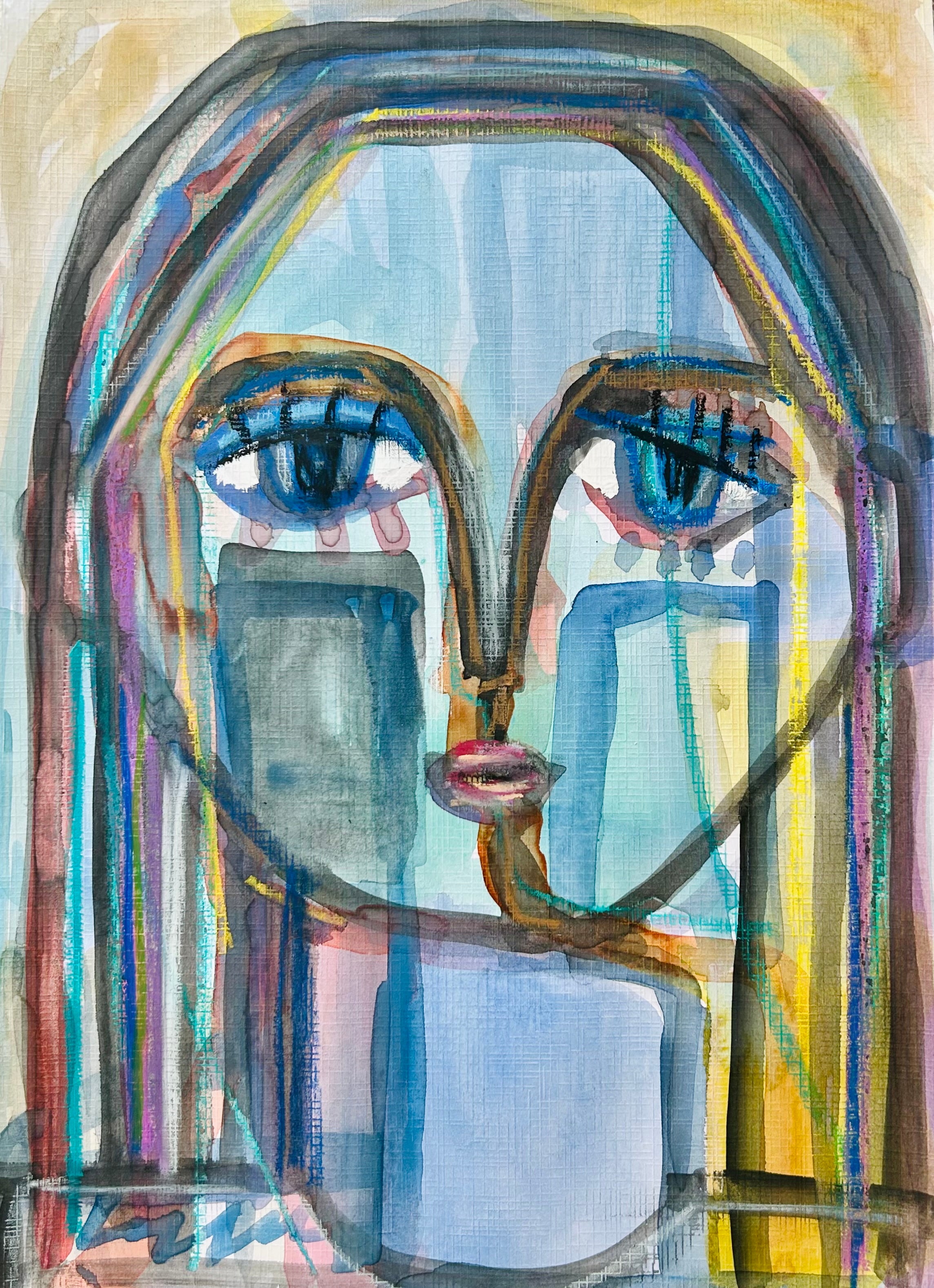 watercolor, acrylic, and oil pastel on paper