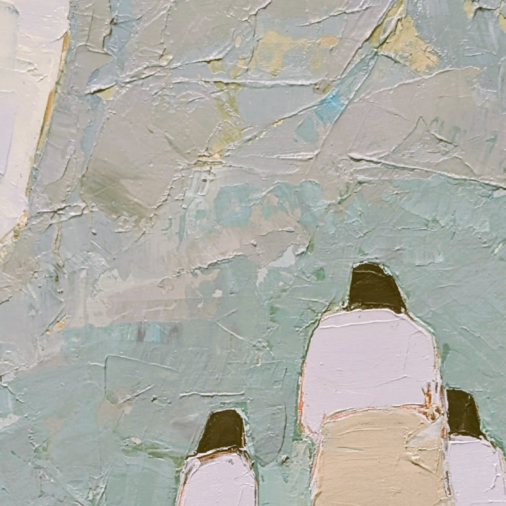 The central element in each of my paintings is the use of color. Nature and people serve as elements for my compositions. Composing flat components in muted, layered impasto blocks invites viewers to explore and discover happiness. I have always been curious about why people either like or dislike paintings. This curiosity led me to consider how feelings can be triggered by muted expressions. As a result, my compositions often convey a passive tone and gradually elicit a parasympathetic response. I began my art career by painting portraits on commission in the 1970s. I studied portrait and landscape painting at the Chitra Mandir Art Institute in India. In recent years, I have transitioned from oil and watercolor to acrylic and impasto styles, using palette knives to enhance texture and depth.