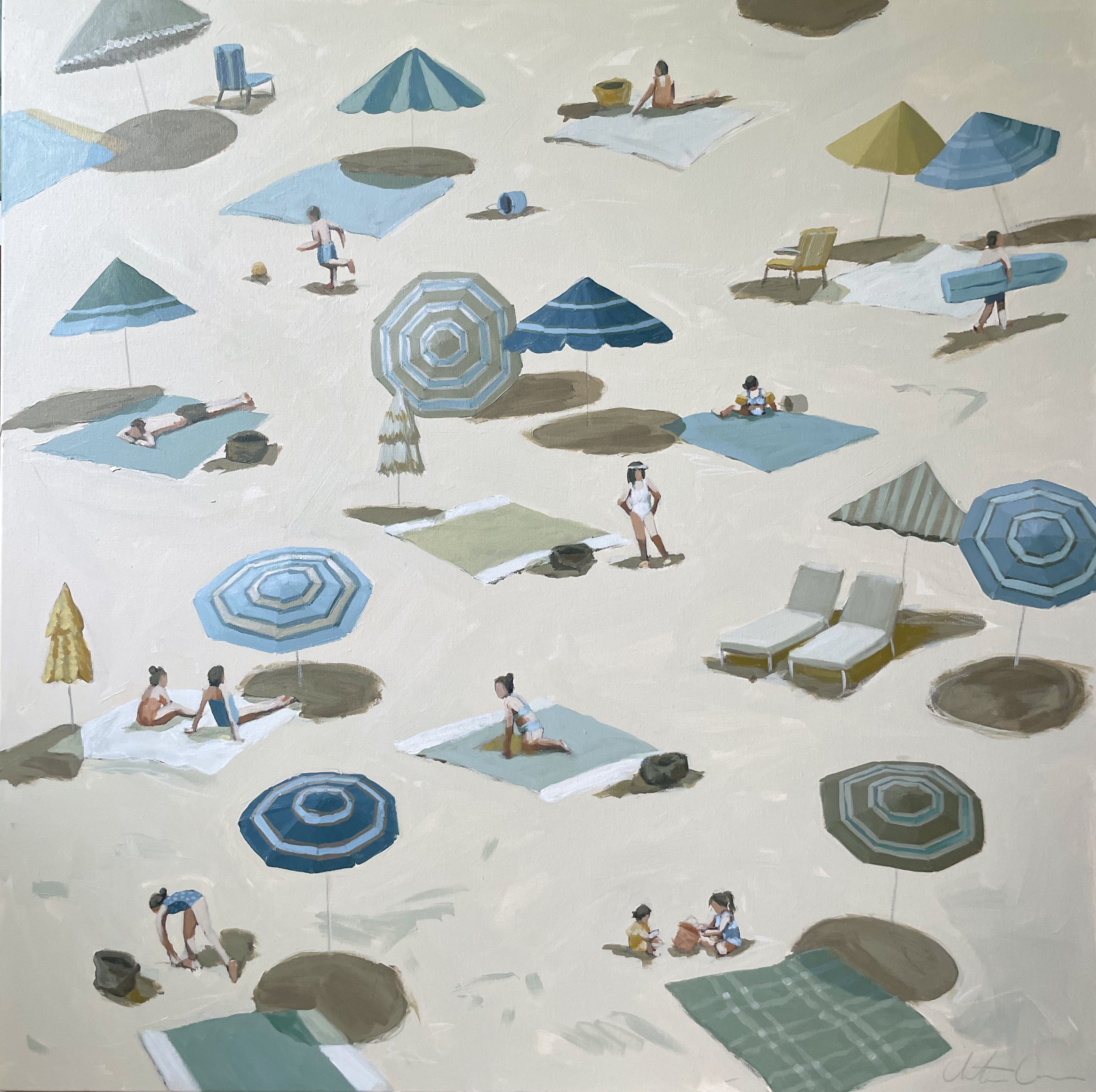 Christine hopes to create artwork that strikes the balance of fun and timeless, in an effortless manner. Composition and color harmony are a distinctive part of her work. Her palettes and subject matter are heavily influenced by her upbringing along the east coast of Florida. She hopes to bring everyday scenes to life through a new perspective and unexpected moments of color. Christine paints entirely from the three primaries (red, yellow + blue) and white. This has helped her gain a strong understanding of color theory.