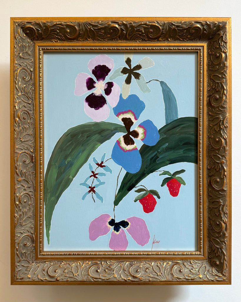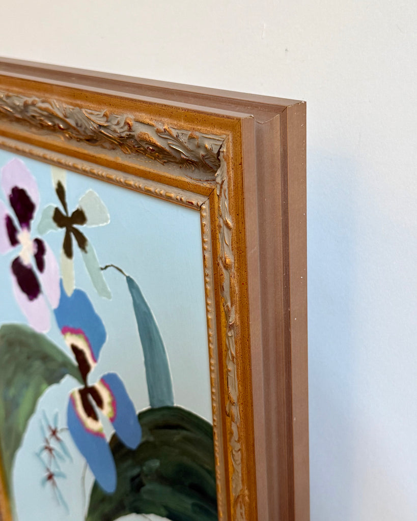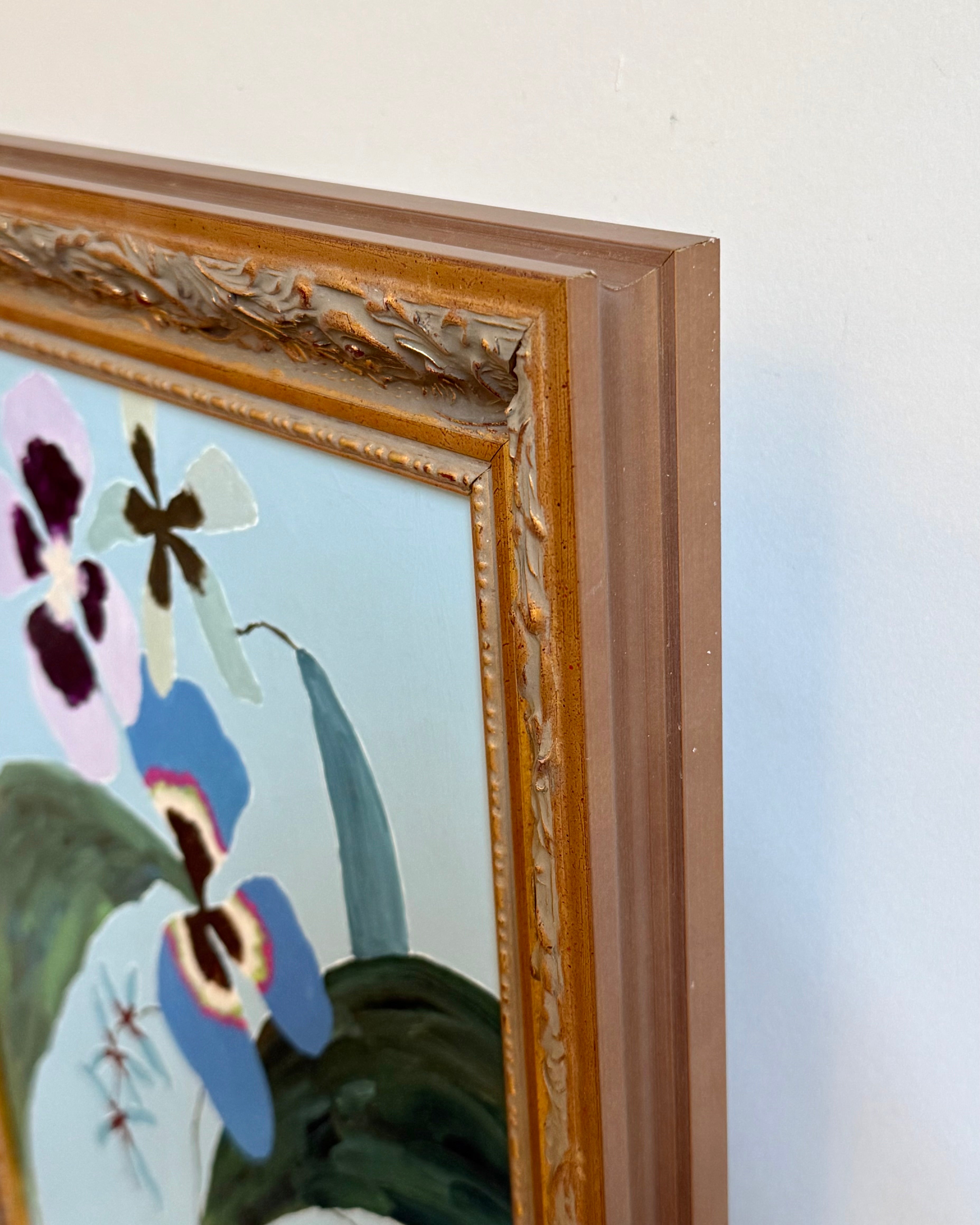 acrylic on wood panel, in vintage inspired gold frame