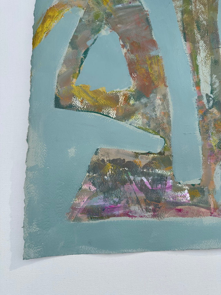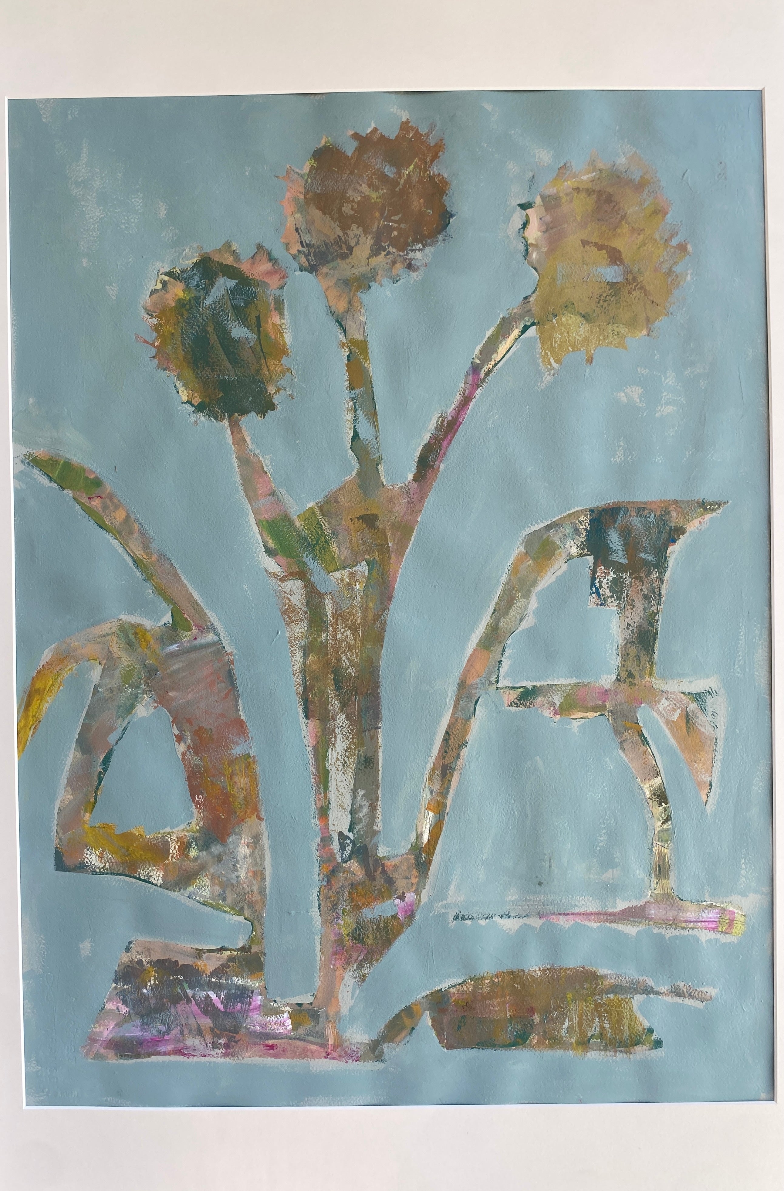 Margaret Meredith is an abstract painter working in acrylic and mixed media. Her work explores emotional atmosphere through layered surfaces, intuitive mark‑making, and a palette that balances moody, muted tones with moments of vivid color. Her recent work builds on botanical themes first explored in 2023, suggesting organic growth and memory rather than literal representation. Alongside this, Meredith has created minimalist, encaustic-medium, and collage‑based works that continue to inform her layered approach. Currently, she is focused on acrylic painting, embracing its fluidity and the freedom to work with water. Pencil marks, printed elements, stencils, and hand‑made tools play an ongoing role in her process, reflecting her love of printmaking and experimental mark‑making. Margaret Meredith lives and works in Columbus, Georgia, with her husband, a woodworker and mushroom farmer, and their two sons.