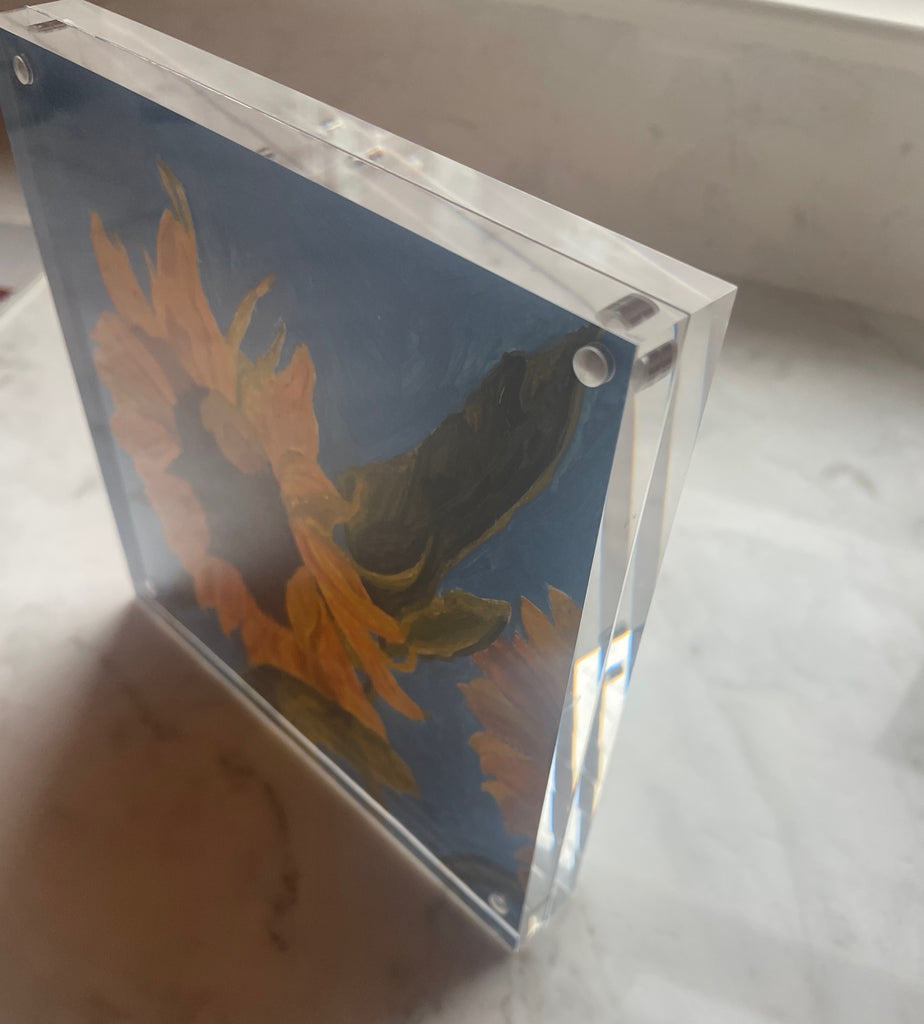 acrylic and colored pencil on heavyweight paper, in acrylic frame