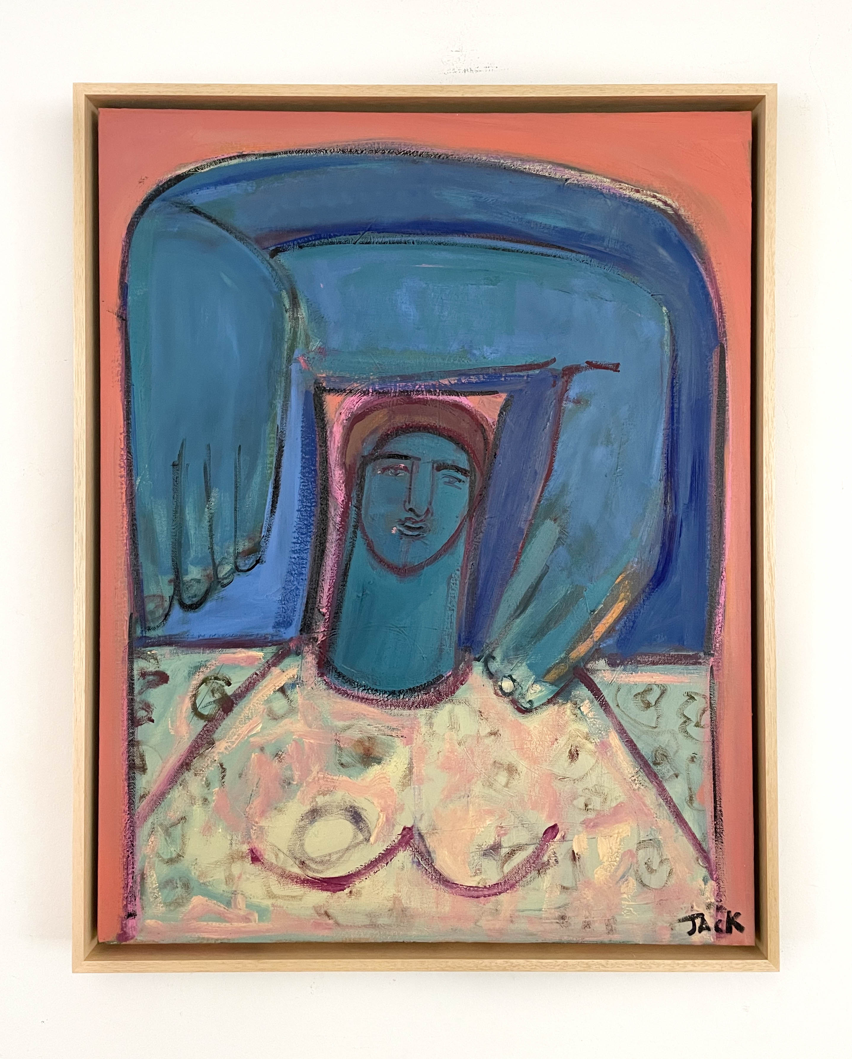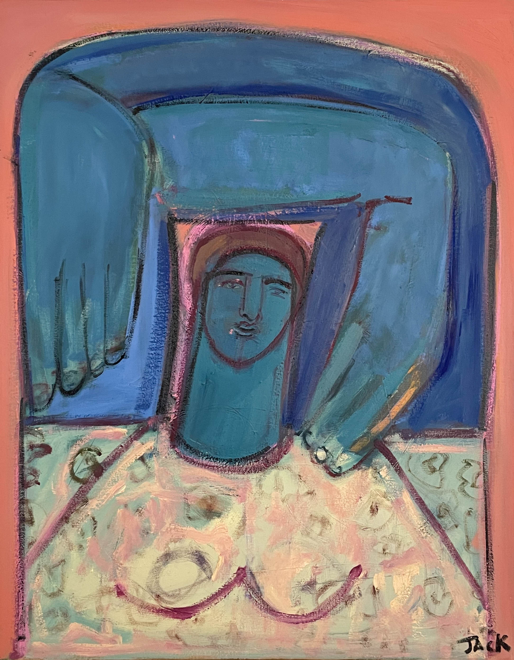 An intuitive artist, Rebecca Jack, paints vibrant figurative works that highlight the beauty of imperfection through visible layering, expressive brush work and mark making. Her figures are boldly unapologetic yet exude a quiet confidence and self-reflective quality. Originally from Knoxville, Tennessee, Jack grew up in an artistic household where she has been painting and drawing all her life. She received her bachelor’s degree at the University of Tennessee in Interior Design. Drawing from her love of design, Jack is inspired by color, pattern, shape and contrast. She is currently living in Atlanta with her husband and son.