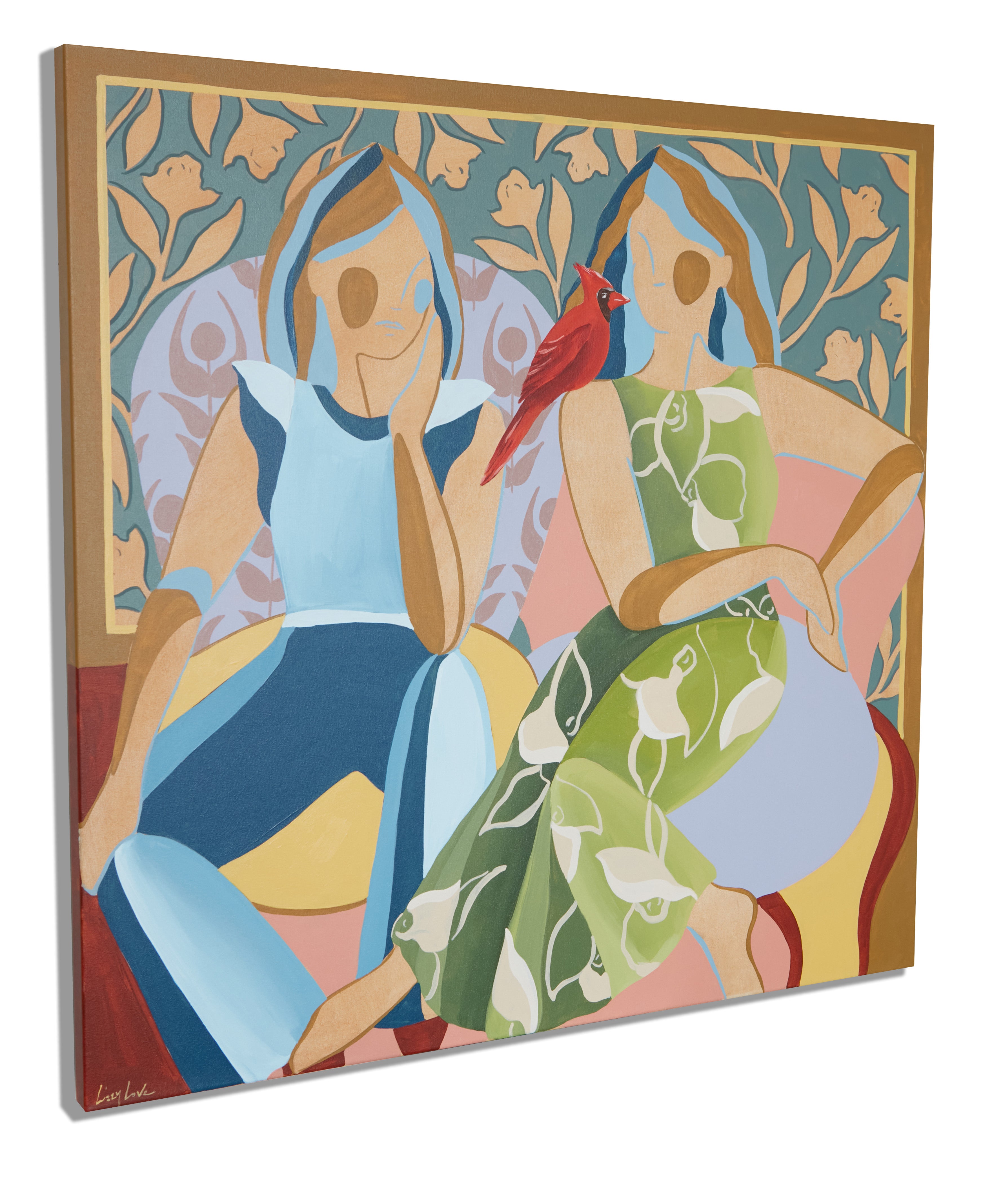 My name is Lizzy Love and I'm an artist in Nashville, TN. I create figurative works on canvas with acrylic paint and papers with watercolor and gouache. This body of work has been a rebirth for me creatively. While I've been painting full time for the last 5 years, I feel like I've really come into myself creatively with my figurative paintings. Born out of a time of uncertainty and lots of questioning, I was pushed to dig deep and get back to basics. I decided to switch gears from painting the landscapes, for which I had been primarily making for years. As an effort to get my creative spark back, I started sketching figures from magazines, a subject I hadn’t explored in a long time. Over many months they slowly evolved into what they have become; starting from detailed and realistic, to more abstract and modernist. I am a big believer that the environment of your home shapes your attitude, and for that reason I love interior design. That love is what led me to start incorporating furniture / interior surroundings / and patterns into the pieces. I pull apart and put back together the lines and shapes of many of my favorite interiors, and place them amongst the figures in a dynamic way. These ladies embody many things - community, respect, femininity, reverence. They are a way to draw attention to what being a woman entails. Many times it means being fierce and strong. Many times it means leaning on and drawing your strength from friends that are like family. While creating each piece, I draw upon the love and reverence I have for all the women in my life; the women who have shaped me, lifted me up when I needed it, laughed with me, and inspired me.