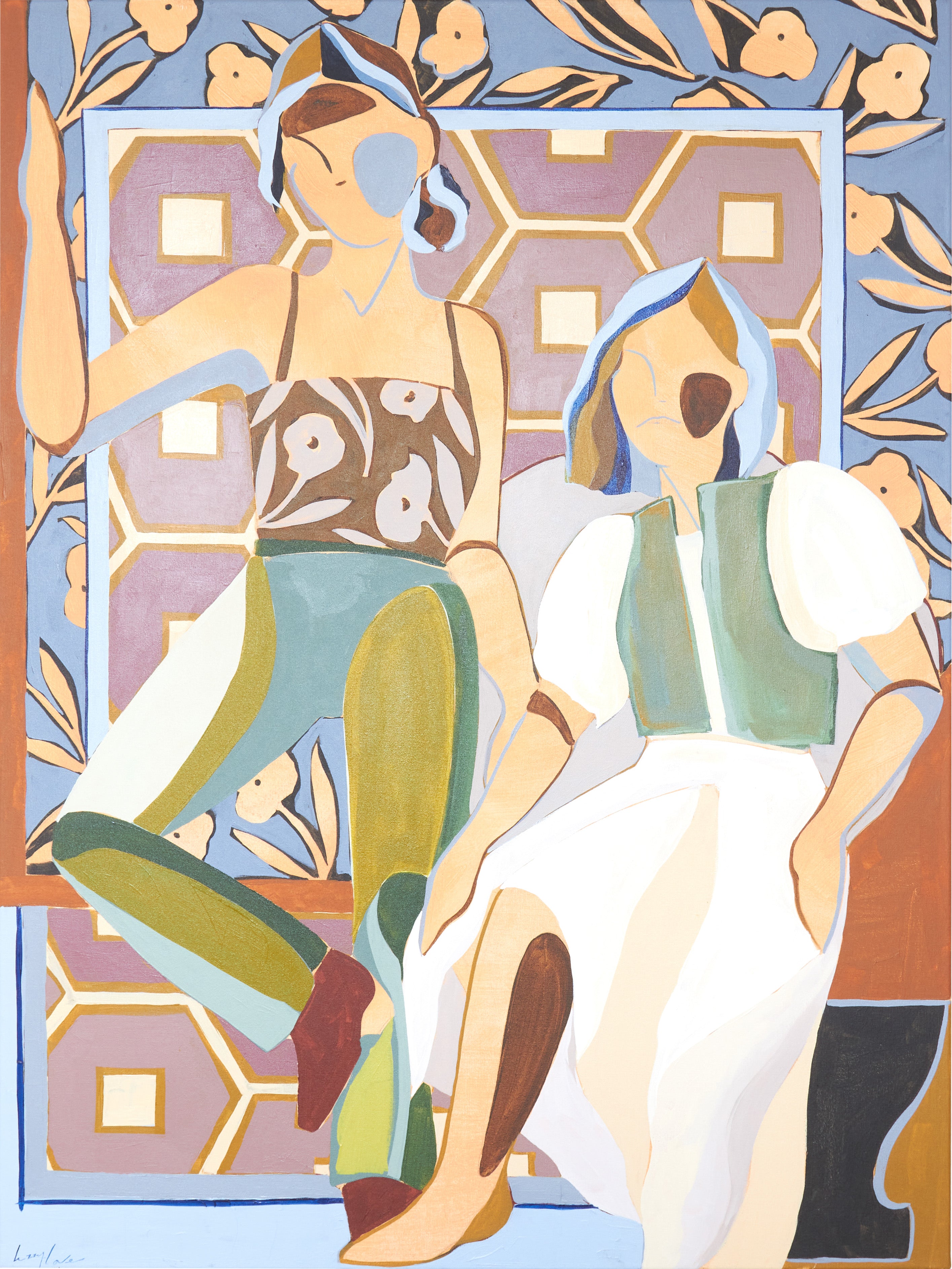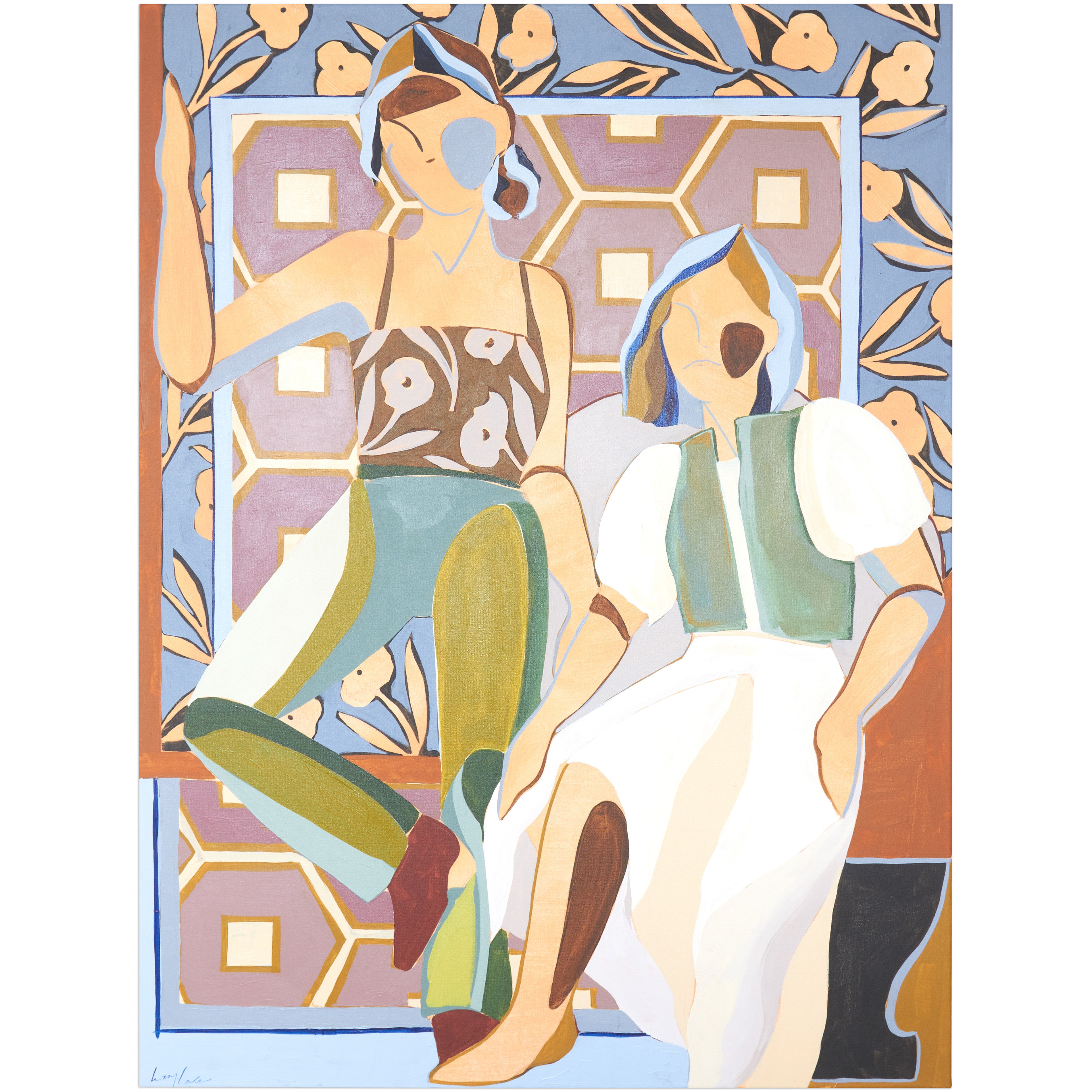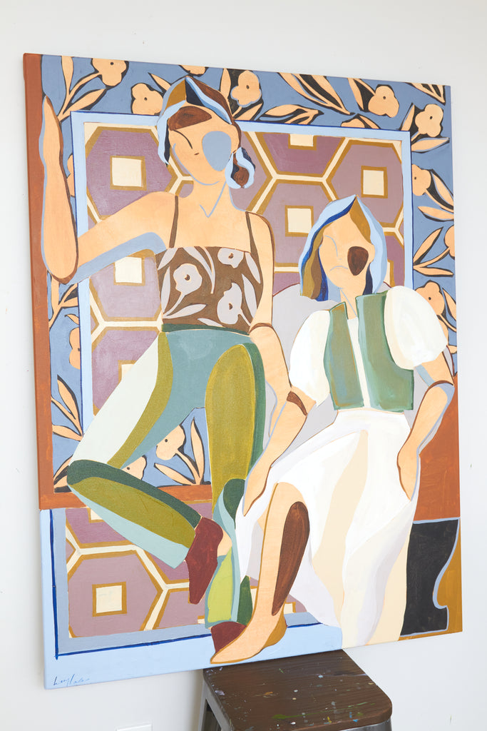 My name is Lizzy Love and I'm an artist in Nashville, TN. I create figurative works on canvas with acrylic paint and papers with watercolor and gouache. This body of work has been a rebirth for me creatively. While I've been painting full time for the last 5 years, I feel like I've really come into myself creatively with my figurative paintings. Born out of a time of uncertainty and lots of questioning, I was pushed to dig deep and get back to basics. I decided to switch gears from painting the landscapes, for which I had been primarily making for years. As an effort to get my creative spark back, I started sketching figures from magazines, a subject I hadn’t explored in a long time. Over many months they slowly evolved into what they have become; starting from detailed and realistic, to more abstract and modernist. I am a big believer that the environment of your home shapes your attitude, and for that reason I love interior design. That love is what led me to start incorporating furniture / interior surroundings / and patterns into the pieces. I pull apart and put back together the lines and shapes of many of my favorite interiors, and place them amongst the figures in a dynamic way. These ladies embody many things - community, respect, femininity, reverence. They are a way to draw attention to what being a woman entails. Many times it means being fierce and strong. Many times it means leaning on and drawing your strength from friends that are like family. While creating each piece, I draw upon the love and reverence I have for all the women in my life; the women who have shaped me, lifted me up when I needed it, laughed with me, and inspired me.