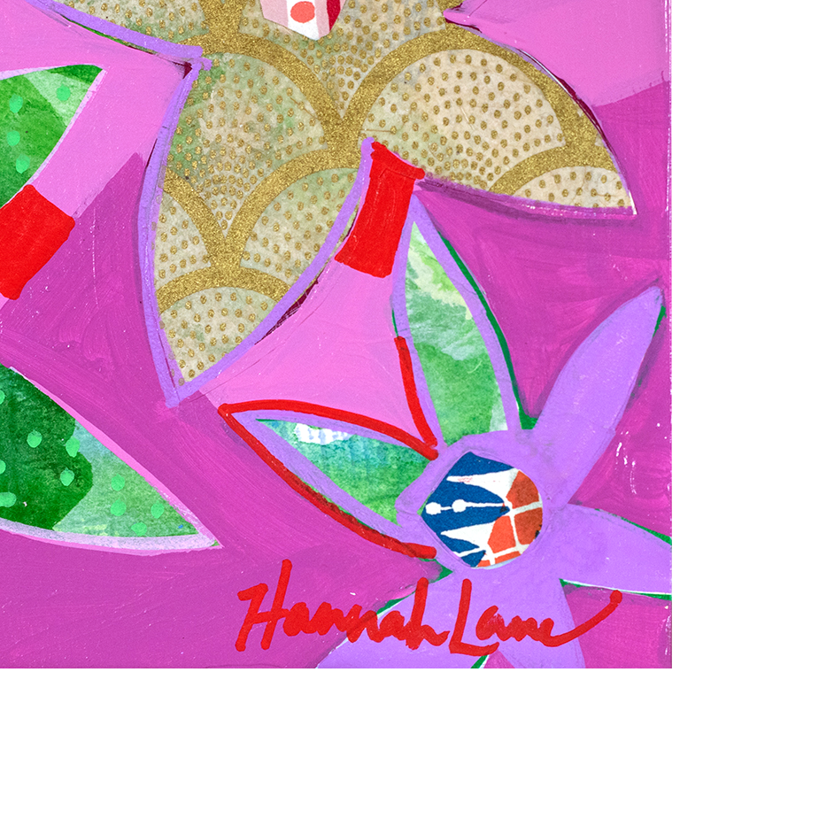 Hannah Lane is a contemporary mixed media artist celebrated for her bold use of color and dynamic, collage-like layering. A Louisiana native and graduate of the Savannah College of Art & Design, Hannah draws deep inspiration from the vibrant landscapes, diverse cultures, and heartfelt sense of family and community found in her southern roots. Her work blends pigmented Japanese papers, expressive line work, and rich washes of acrylic paint to create textured, energetic paintings. Each collection reflects her love for nature, storytelling, and community—an invitation to explore the beauty of her inner imagination. Hannah is represented by some of the top galleries in the Southeast, and her paintings are collected privately and in corporate spaces across the country. She also loves working one-on-one with collectors to create meaningful, custom pieces. After living and painting in Italy and New Orleans, Hannah now calls Nashville home, where she is part of a thriving art community. When she’s not painting in her home studio, you’ll find Hannah hiking with her boys, reading, or cooking up something seasonal and delicious! The crowd series is one of my most iconic collections, inspired by my big, beautiful Louisiana family and the joyful spirit of southern gatherings. I grew up surrounded by cousins, friends, and neighbors—many from families as large and lively as my own—where faith and family were at the heart of everything. Over the past 12 years, this series has evolved with new patterns, papers, and symbols that reflect the changing seasons of life. Each crowd painting is a kind of meditation, a reflection on the deep truth that we’re all connected. Rich with personal symbols and intuitive mark-making, these pieces push the boundaries of mixed media and invite you to see something familiar in a new way. Whether you're drawn to the vibrant energy, the quiet details, or the sense of belonging they evoke, each crowd carries its own unique aura—waiting for the right person to bring it home.
