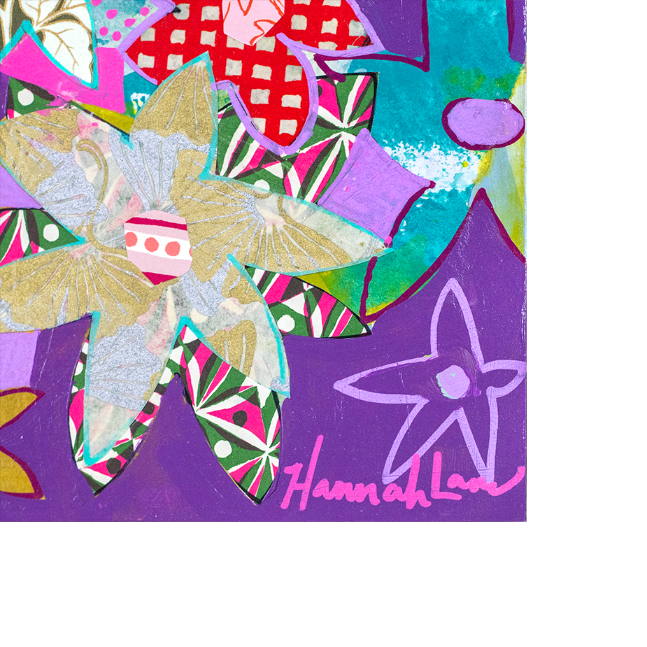 Hannah Lane is a contemporary mixed media artist celebrated for her bold use of color and dynamic, collage-like layering. A Louisiana native and graduate of the Savannah College of Art & Design, Hannah draws deep inspiration from the vibrant landscapes, diverse cultures, and heartfelt sense of family and community found in her southern roots. Her work blends pigmented Japanese papers, expressive line work, and rich washes of acrylic paint to create textured, energetic paintings. Each collection reflects her love for nature, storytelling, and community—an invitation to explore the beauty of her inner imagination. Hannah is represented by some of the top galleries in the Southeast, and her paintings are collected privately and in corporate spaces across the country. She also loves working one-on-one with collectors to create meaningful, custom pieces. After living and painting in Italy and New Orleans, Hannah now calls Nashville home, where she is part of a thriving art community. When she’s not painting in her home studio, you’ll find Hannah hiking with her boys, reading, or cooking up something seasonal and delicious! The crowd series is one of my most iconic collections, inspired by my big, beautiful Louisiana family and the joyful spirit of southern gatherings. I grew up surrounded by cousins, friends, and neighbors—many from families as large and lively as my own—where faith and family were at the heart of everything. Over the past 12 years, this series has evolved with new patterns, papers, and symbols that reflect the changing seasons of life. Each crowd painting is a kind of meditation, a reflection on the deep truth that we’re all connected. Rich with personal symbols and intuitive mark-making, these pieces push the boundaries of mixed media and invite you to see something familiar in a new way. Whether you're drawn to the vibrant energy, the quiet details, or the sense of belonging they evoke, each crowd carries its own unique aura—waiting for the right person to bring it home.